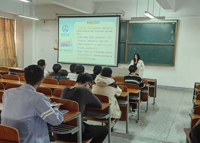 中铁建工集团有限公司第四建设有限公司校园招聘负责人围绕企业简介、招聘岗位、薪资待遇、发展前景等四个方面进行了宣讲,对同学们的疑问进行了进一步的交流。宣讲会后,进行了简历投递、面试等环节。